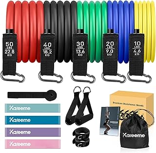 KAREEME Resistance Bands Set Widerstandsbänder,Fitnessbänder Fitnessband Stapelbar bis zu 150lbs Expander Tubes Bänder mit Griffen, Türanker & Fußschlaufen Für Fitness, Kraft, Yoga, Pilates(17 PCS)