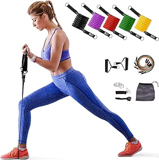 Resistance Bands Fitnessbänder 150lb Fitnessband Set 5 Fitnessbänder Widerstandsbänder Griffen Expander Tube Bands Türanker Knöchelriemen und Tragetasche ideal für Pilates Krafttraining Physiotherapie