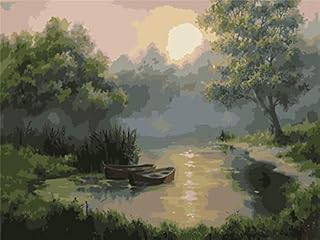TAHEAT DIY Ölgemälde nach Zahlen Landschaft, Leinwand Ölgemälde Sonnenuntergang Seelandschaft für Erwachsene und Zeichnung Anfänger Malen nach Zahlen mit Pinseln ohne Rahmen 16 x 20 Zoll